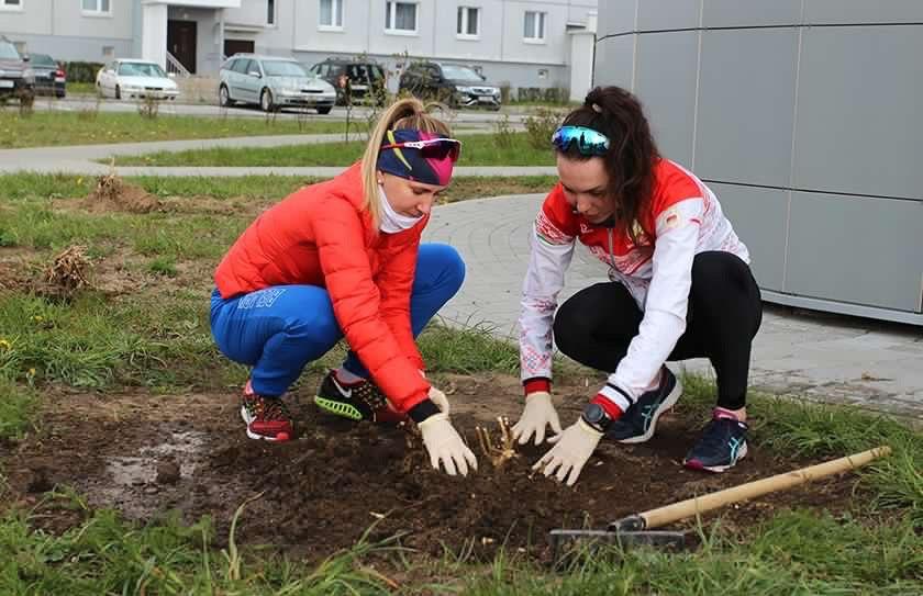 Также в благоустрои?стве территории РЦОП спорта помогали наши конькобежцы — Марина Зуева, Игнат Головатюк и Виталии? Михаи?лов!