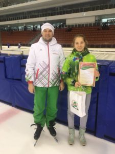 Впрочем, награды нашли не только участников соревнований. Председатель директората Белорусского союза конькобежцев по шорт-треку Базыленко В.В. вручил диплом и памятные сувениры бронзовому призеру Зимнего Европейского юношеского олимпийского фестиваля по шорт-треку 2019 года Яне Домбровской.
